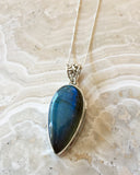 Stunning labradorite pendant with 18" sterling silver box chain.