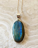 Stunning labradorite pendant with 18" sterling silver box chain.