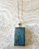 Stunning labradorite pendant with 18" sterling silver box chain.
