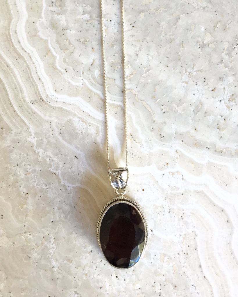 Stunning, large oval smokey quartz pendant on an 18 inch sterling silver chain.