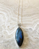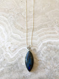 Stunning labradorite pendant with 18" sterling silver box chain.